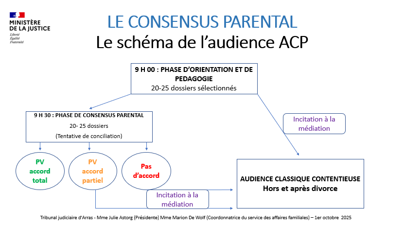 En France, le Tribunal judiciaire d’Arras a ouvert la voie en instaurant, depuis octobre 2023, une audience de consensus parental (ACP).